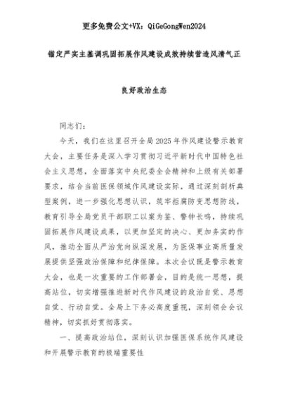 【七哥公文】2025年:【七哥公文】锚定严实主基调巩固拓展作风建设成效持续营造风清气正良好政治生态+更多免费公文+VX:QiGeGongWen2024+更多免费公文+VX:QiGeGongWen2024