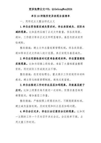 【七哥公文】2025年:【七哥公文】单位10种隐形变异表现自查清单+更多免费公文+VX:QiGeGongWen2024+更多免费公文+VX:QiGeGongWen2024