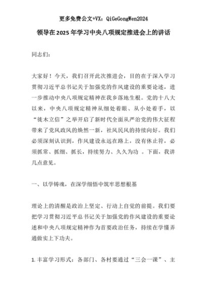 【七哥公文】2025年:【七哥公文】领导在2025年学习中央八项规定推进会上的讲话+更多免费公文+VX:QiGeGongWen2024+更多免费公文+VX:QiGeGongWen2024