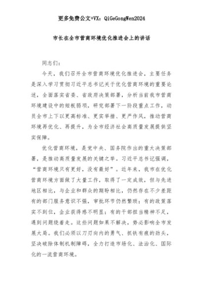 【七哥公文】2025年:【七哥公文】市长在全市营商环境优化推进会上的讲话+更多免费公文+VX:QiGeGongWen2024+更多免费公文+VX:QiGeGongWen2024