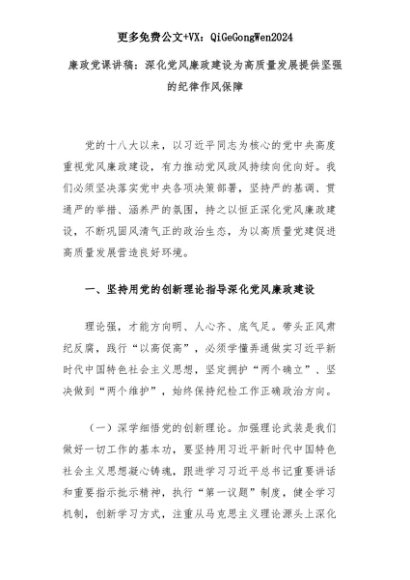 【七哥公文】2025年:【七哥公文】廉政党课讲稿:深化党风廉政建设为高质量发展提供坚强的纪律作风保障+更多免费公文+VX:QiGeGongWen2024+更多免费公文+VX:QiGeGongWen2024