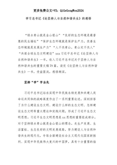 【七哥公文】2025年:【七哥公文】学习总书记《论坚持人与自然和谐共生》的感悟+更多免费公文+VX:QiGeGongWen2024+更多免费公文+VX:QiGeGongWen2024