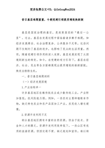 【七哥公文】2025年:【七哥公文】昔日基层难题重重,今朝党建引领提质增效焕新颜+更多免费公文+VX:QiGeGongWen2024+更多免费公文+VX:QiGeGongWen2024