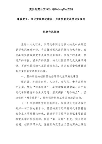 【七哥公文】2025年:【七哥公文】廉政党课:深化党风廉政建设,为高质量发展提供坚强的纪律作风保障+更多免费公文+VX:QiGeGongWen2024+更多免费公文+VX:QiGeGongWen2024