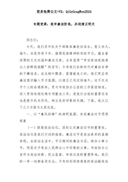 【七哥公文】2025年:【七哥公文】专题党课:筑牢廉洁防线,共迎清正明天+更多免费公文+VX:QiGeGongWen2024+更多免费公文+VX:QiGeGongWen2024