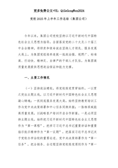 【七哥公文】2025年:【七哥公文】党校2025年上半年工作总结(集团公司)+更多免费公文+VX:QiGeGongWen2024+更多免费公文+VX:QiGeGongWen2024