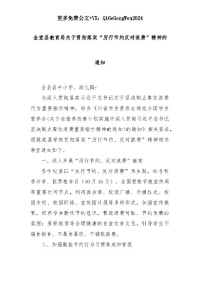 【七哥公文】2025年:【七哥公文】金堂县教育局关于贯彻落实“厉行节约反对浪费”精神的通知+更多免费公文+VX:QiGeGongWen2024+更多免费公文+VX:QiGeGongWen2024