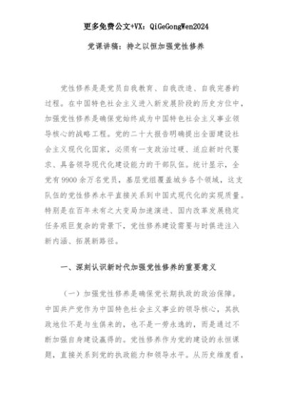 【七哥公文】2025年:【七哥公文】党课讲稿:持之以恒加强党性修养+更多免费公文+VX:QiGeGongWen2024+更多免费公文+VX:QiGeGongWen2024