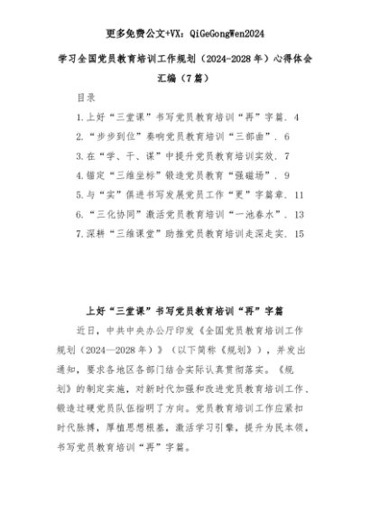 【七哥公文】2025年:【七哥公文】(7篇)学习全国党员教育培训工作规划(2024-2028年)心得体会汇编+更多免费公文+VX:QiGeGongWen2024+更多免费公文+VX:QiGeGongWen2024
