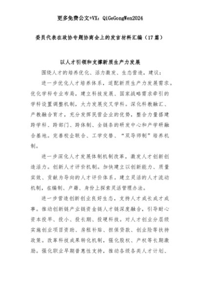 【七哥公文】2025年:【七哥公文】(17篇)委员代表在政协专题协商会上的发言材料汇编+更多免费公文+VX:QiGeGongWen2024+更多免费公文+VX:QiGeGongWen2024