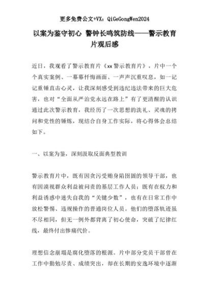 【七哥公文】2025年:【七哥公文】以案为鉴守初心 警钟长鸣筑防线——警示教育片观后感+更多免费公文+VX:QiGeGongWen2024+更多免费公文+VX:QiGeGongWen2024