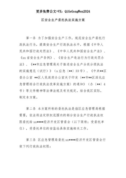 【七哥公文】2025年:【七哥公文】区安全生产委托执法实施方案+更多免费公文+VX:QiGeGongWen2024+更多免费公文+VX:QiGeGongWen2024