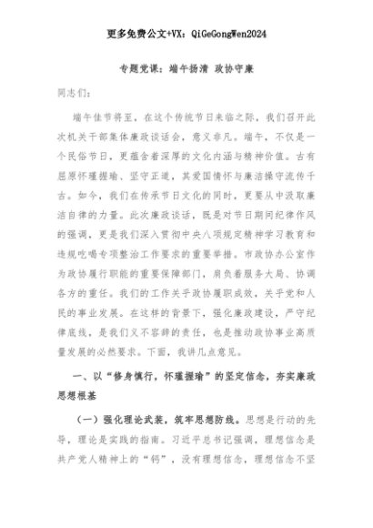 【七哥公文】2025年:【七哥公文】专题党课:端午扬清 政协守廉+更多免费公文+VX:QiGeGongWen2024+更多免费公文+VX:QiGeGongWen2024