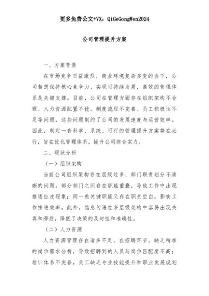 【七哥公文】2025年:【七哥公文】公司管理提升方案+更多免费公文+VX:QiGeGongWen2024+更多免费公文+VX:QiGeGongWen2024