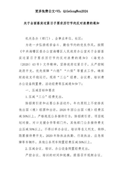 【七哥公文】2025年:【七哥公文】关于全面落实过紧日子要求厉行节约反对浪费的通知+更多免费公文+VX:QiGeGongWen2024+更多免费公文+VX:QiGeGongWen2024