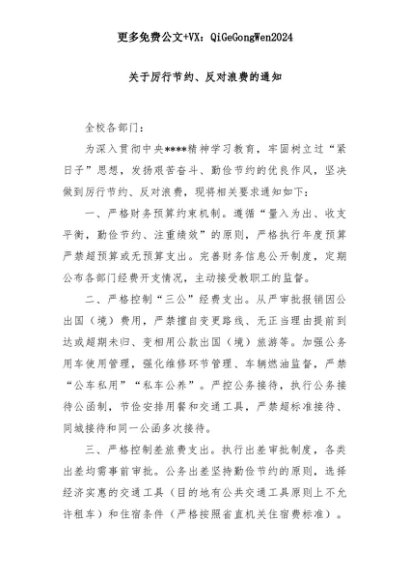 【七哥公文】2025年:【七哥公文】关于厉行节约、反对浪费的通知+更多免费公文+VX:QiGeGongWen2024+更多免费公文+VX:QiGeGongWen2024