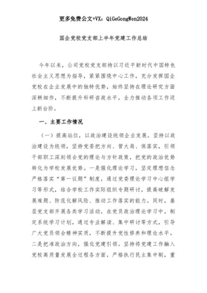 【七哥公文】2025年:【七哥公文】国企党校党支部上半年党建工作总结+更多免费公文+VX:QiGeGongWen2024+更多免费公文+VX:QiGeGongWen2024