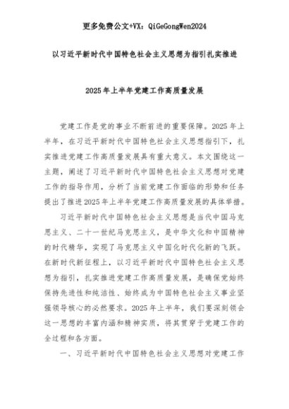 【七哥公文】2025年:【七哥公文】以习近平新时代中国特色社会主义思想为指引扎实推进2025年上半年党建工作高质量发展+更多免费公文+VX:QiGeGongWen2024+更多免费公文+VX:QiGeGongWen2024