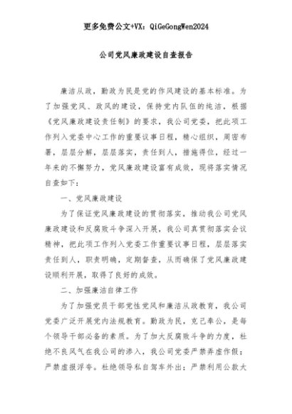 【七哥公文】2025年:【七哥公文】公司党风廉政建设自查报告+更多免费公文+VX:QiGeGongWen2024+更多免费公文+VX:QiGeGongWen2024
