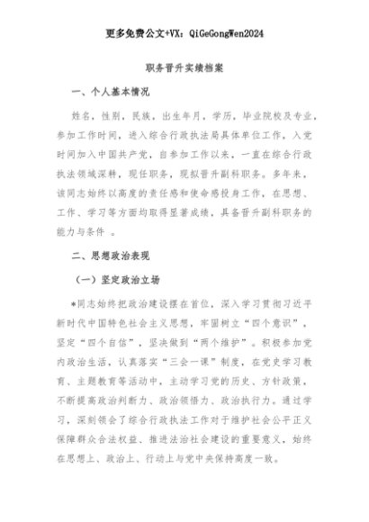 【七哥公文】2025年:【七哥公文】职务晋升实绩档案+更多免费公文+VX:QiGeGongWen2024+更多免费公文+VX:QiGeGongWen2024