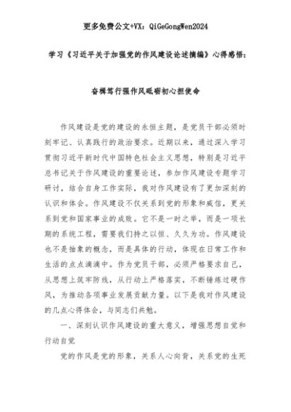 【七哥公文】2025年:【七哥公文】学习《习近平关于加强党的作风建设论述摘编》心得感悟:奋楫笃行强作风砥砺初心担使命+更多免费公文+VX:QiGeGongWen2024+更多免费公文+VX:QiGeGongWen2024
