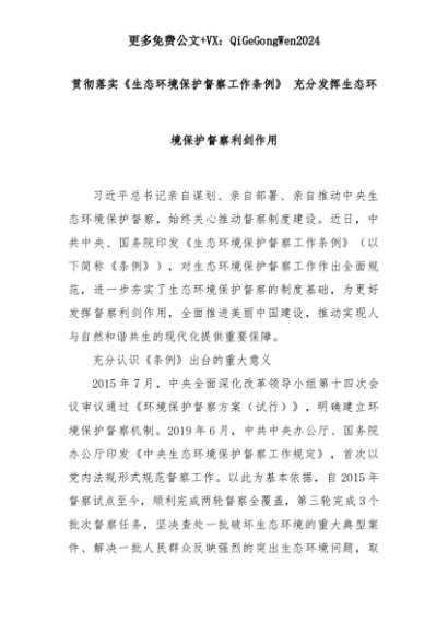 【七哥公文】2025年:【七哥公文】贯彻落实《生态环境保护督察工作条例》 充分发挥生态环境保护督察利剑作用+更多免费公文+VX:QiGeGongWen2024+更多免费公文+VX:QiGeGongWen2024