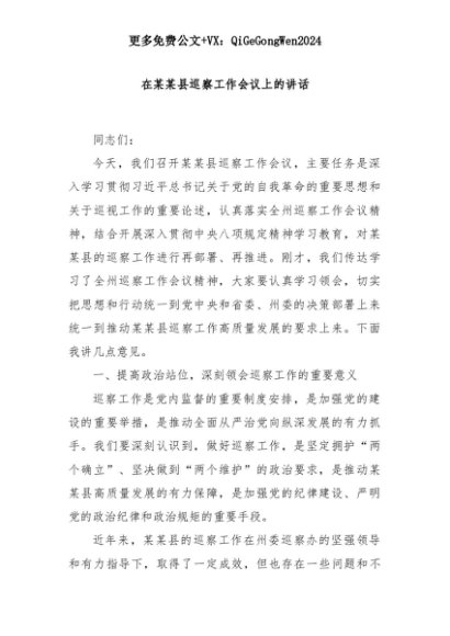 【七哥公文】2025年:【七哥公文】在某某县巡察工作会议上的讲话+更多免费公文+VX:QiGeGongWen2024+更多免费公文+VX:QiGeGongWen2024