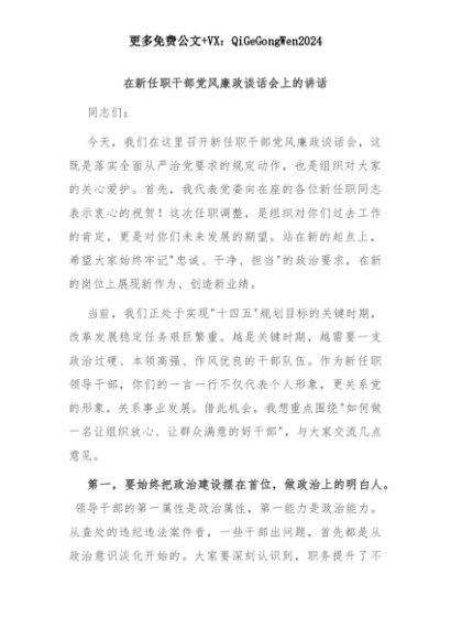 【七哥公文】2025年:【七哥公文】在新任职干部党风廉政谈话会上的讲话+更多免费公文+VX:QiGeGongWen2024+更多免费公文+VX:QiGeGongWen2024