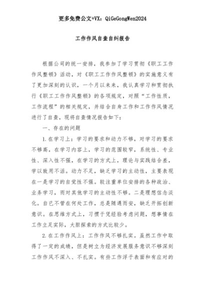 【七哥公文】2025年:【七哥公文】工作作风自查自纠报告+更多免费公文+VX:QiGeGongWen2024+更多免费公文+VX:QiGeGongWen2024
