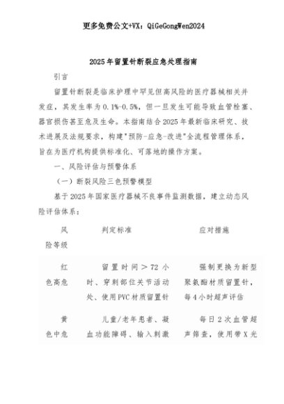 【七哥公文】2025年:【七哥公文】2025年留置针断裂应急处理指南+更多免费公文+VX:QiGeGongWen2024+更多免费公文+VX:QiGeGongWen2024