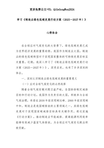 【七哥公文】2025年:【七哥公文】学习《制造业绿色低碳发展行动方案(2025-2027年)》心得体会+更多免费公文+VX:QiGeGongWen2024+更多免费公文+VX:QiGeGongWen2024