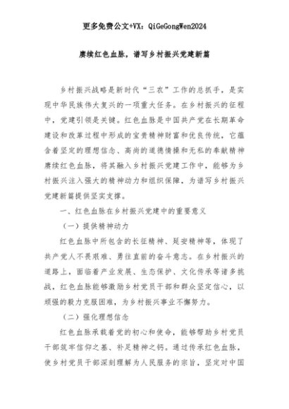 【七哥公文】2025年:【七哥公文】赓续红色血脉,谱写乡村振兴党建新篇+更多免费公文+VX:QiGeGongWen2024+更多免费公文+VX:QiGeGongWen2024