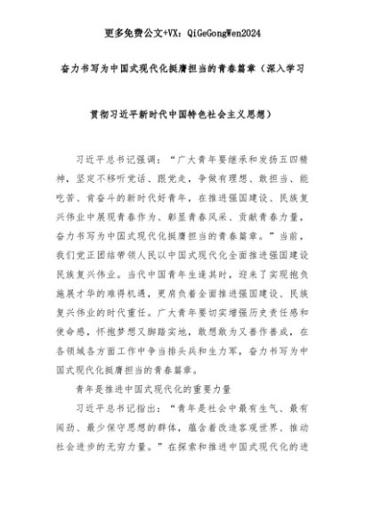 【七哥公文】2025年:【七哥公文】奋力书写为中国式现代化挺膺担当的青春篇章(深入学习贯彻习近平新时代中国特色社会主义思想)+更多免费公文+VX:QiGeGongWen2024+更多免费公文+VX:QiGeGongWen2024