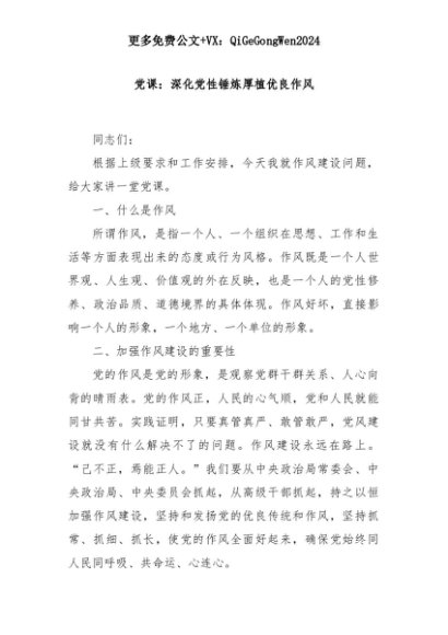 【七哥公文】2025年:【七哥公文】党课:深化党性锤炼厚植优良作风+更多免费公文+VX:QiGeGongWen2024+更多免费公文+VX:QiGeGongWen2024
