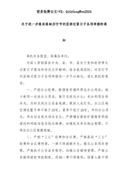 【七哥公文】2025年:【七哥公文】关于进一步落实落细厉行节约坚持过紧日子各项举措的通知+更多免费公文+VX:QiGeGongWen2024+更多免费公文+VX:QiGeGongWen2024