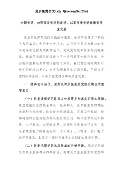 【七哥公文】2025年:【七哥公文】专题党课:加强基层党组织建设,以高质量党建保障高质量发展+更多免费公文+VX:QiGeGongWen2024+更多免费公文+VX:QiGeGongWen2024