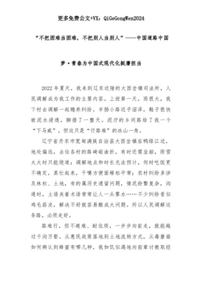 【七哥公文】2025年:【七哥公文】“不把困难当困难,不把别人当别人”——中国道路中国梦·青春为中国式现代化挺膺担当+更多免费公文+VX:QiGeGongWen2024+更多免费公文+VX:QiGeGongWen2024