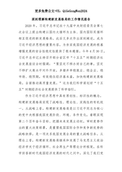 【七哥公文】2025年:【七哥公文】深刻理解构建新发展格局的工作情况报告+更多免费公文+VX:QiGeGongWen2024+更多免费公文+VX:QiGeGongWen2024