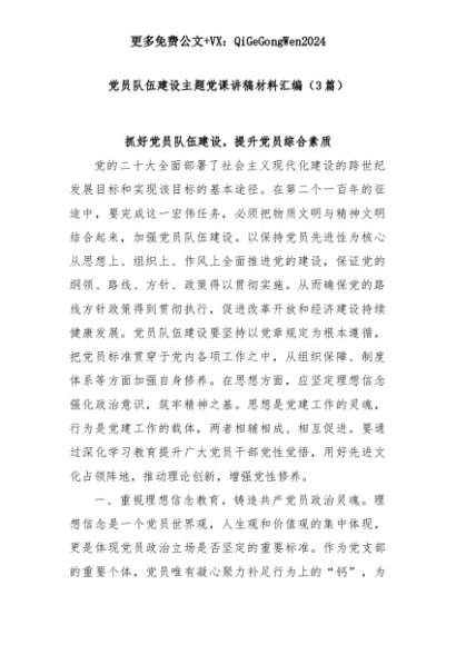 【七哥公文】2025年:【七哥公文】(3篇)党员队伍建设主题党课讲稿材料汇编+更多免费公文+VX:QiGeGongWen2024+更多免费公文+VX:QiGeGongWen2024