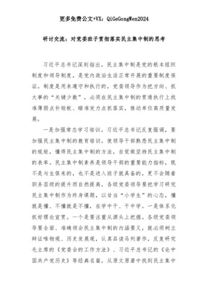 【七哥公文】2025年:【七哥公文】研讨交流:对党委班子贯彻落实民主集中制的思考+更多免费公文+VX:QiGeGongWen2024+更多免费公文+VX:QiGeGongWen2024
