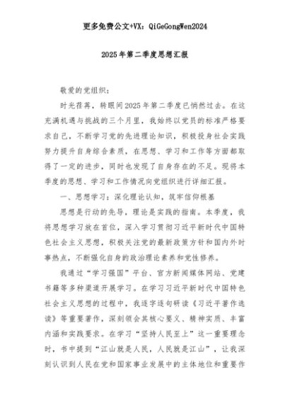 【七哥公文】2025年:【七哥公文】2025年第二季度思想汇报+更多免费公文+VX:QiGeGongWen2024+更多免费公文+VX:QiGeGongWen2024