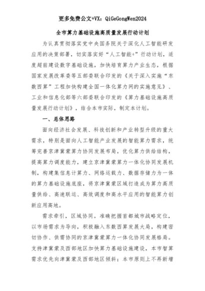 【七哥公文】2025年:【七哥公文】全市算力基础设施高质量发展行动计划+更多免费公文+VX:QiGeGongWen2024+更多免费公文+VX:QiGeGongWen2024