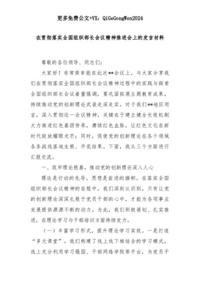 【七哥公文】2025年:【七哥公文】在贯彻落实全国组织部长会议精神推进会上的发言材料+更多免费公文+VX:QiGeGongWen2024+更多免费公文+VX:QiGeGongWen2024