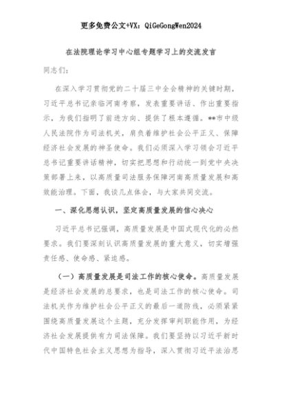 【七哥公文】2025年:【七哥公文】在法院理论学习中心组专题学习上的交流发言+更多免费公文+VX:QiGeGongWen2024+更多免费公文+VX:QiGeGongWen2024