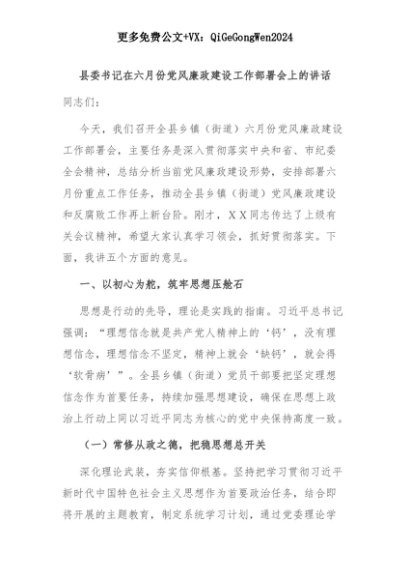 【七哥公文】2025年:【七哥公文】县委书记在六月份党风廉政建设工作部署会上的讲话+更多免费公文+VX:QiGeGongWen2024+更多免费公文+VX:QiGeGongWen2024