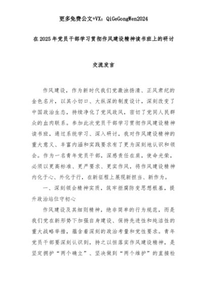 【七哥公文】2025年:【七哥公文】在2025年党员干部学习贯彻作风建设精神读书班上的研讨交流发言+更多免费公文+VX:QiGeGongWen2024+更多免费公文+VX:QiGeGongWen2024