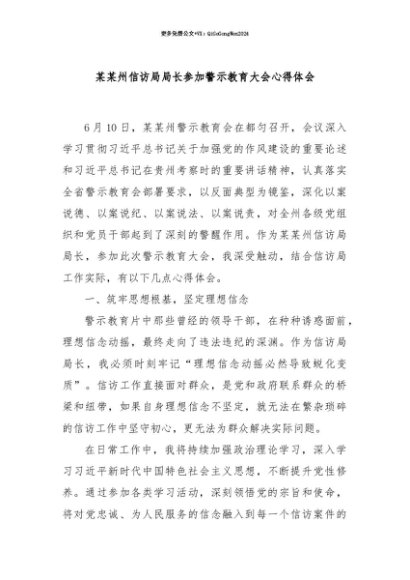 【七哥公文】2025年:【七哥公文】某某州信访局局长参加警示教育大会心得体会+更多免费公文+VX:QiGeGongWen2024+更多免费公文+VX:QiGeGongWen2024