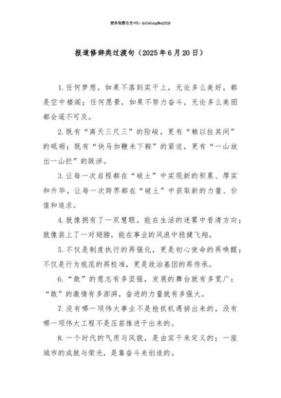 【七哥公文】2025年:【七哥公文】报道修辞类过渡句(2025年6月20日)+更多免费公文+VX:QiGeGongWen2024+更多免费公文+VX:QiGeGongWen2024