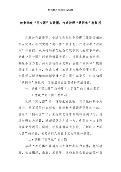 【七哥公文】2025年:【七哥公文】绘制党建“同心圆”实景图,打造治理“共同体”样板间+更多免费公文+VX:QiGeGongWen2024+更多免费公文+VX:QiGeGongWen2024