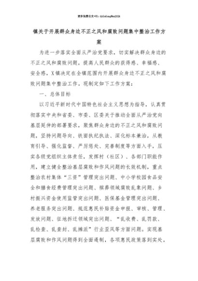 【七哥公文】2025年:【七哥公文】镇关于开展群众身边不正之风和腐败问题集中整治工作方案+更多免费公文+VX:QiGeGongWen2024+更多免费公文+VX:QiGeGongWen2024